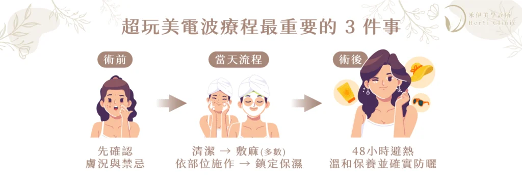 不少診所會建議術前先停用酸類或A醇等刺激性成分,避免當天皮膚更敏感。