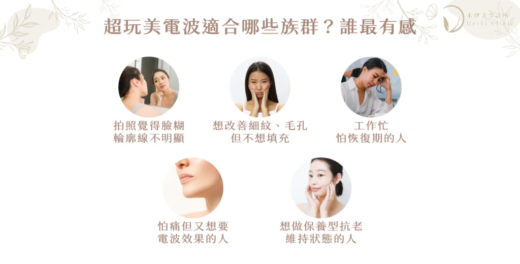 不過,超玩美電波在臨床與市場上的定位,確實很常被放在「想改善鬆、垂、紋理,但還沒到需要手術」的族群。這邊替大家整理常見「有感族群」大概長這樣: